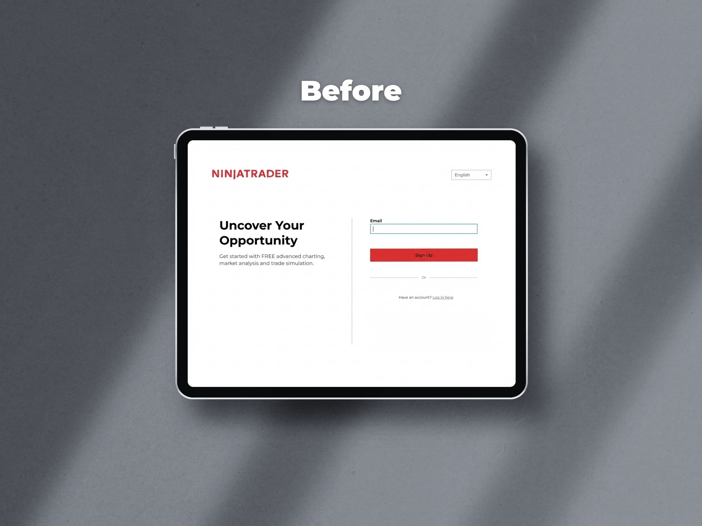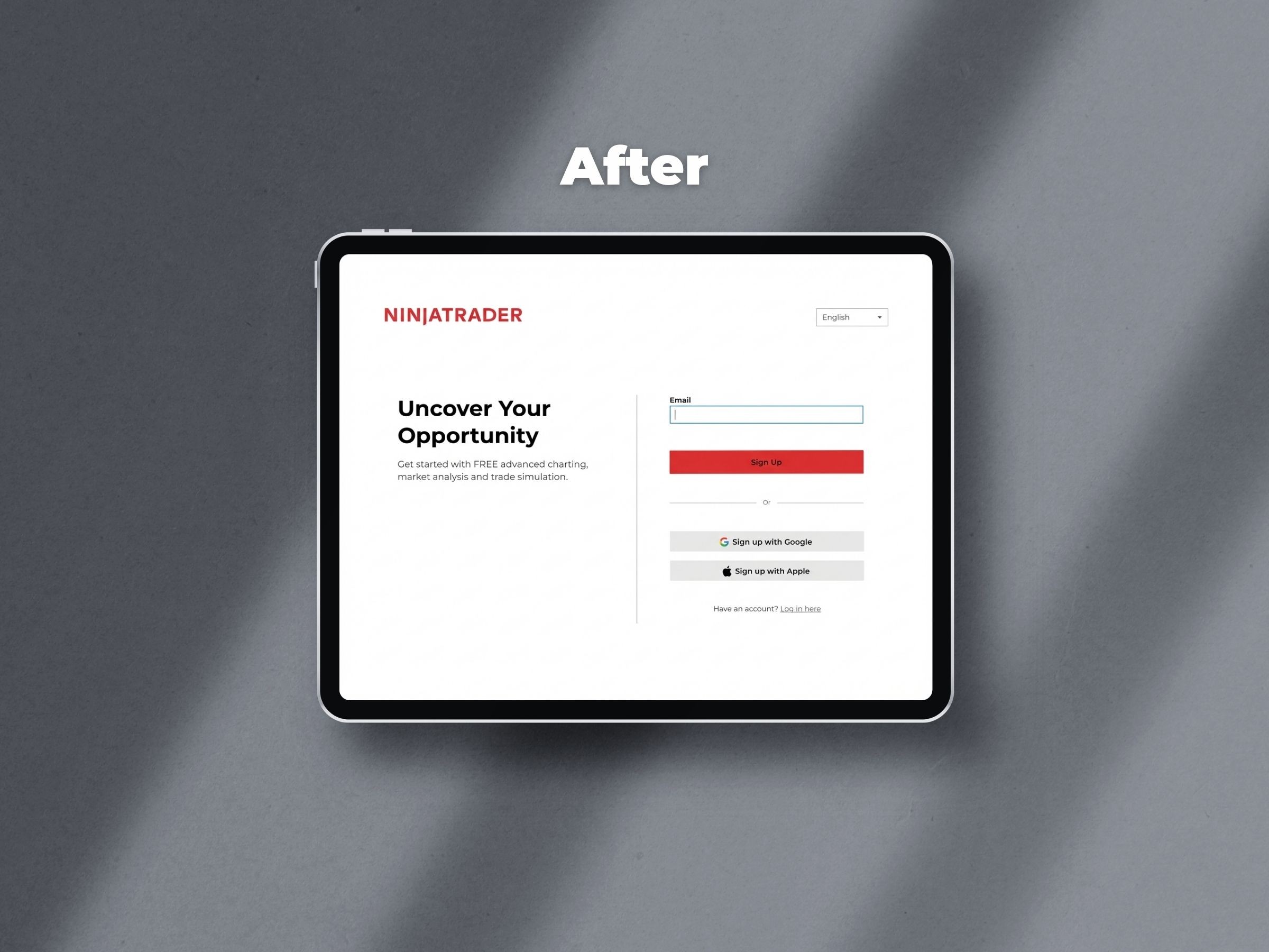 Below: the initial sign-up page redesign improved login and sign up options for users.